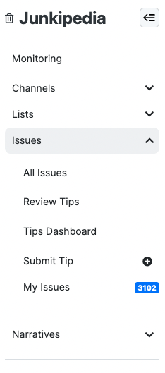 * [Filtrar asuntos](https://docs.junkipedia.org/es/primeros-pasos/revision-del-contenido-monitoreado/filtrar-asuntos)