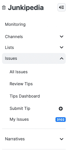 En Junkipedia, un asunto es una colección de información sobre un contenido monitoreado. Se origina a partir de un reporte que proporciona el primer aviso de contenido problemático. Cuando múltiples reportes hacen referencia a la misma URL, se vincularán automáticamente al asunto creado por el primer reporte aprobado.